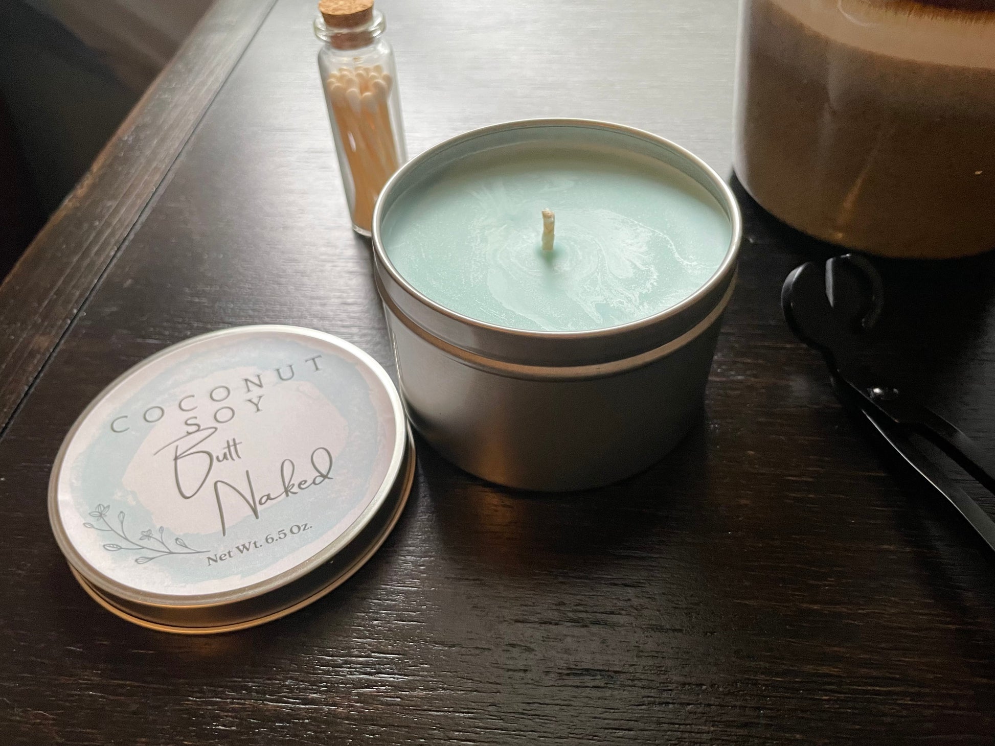 Soy coconut blend wax with natural cotton braided wick. Hand poured in small batches, these highly fragrant tins will compliment meduim and small sized rooms. Remember to trim your wicks to mantain a quality burn!! 30-35 hour burn time.